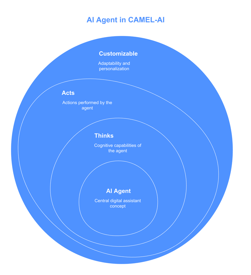 Picture an AI agent as your digital assistant—kinda like JARVIS from Iron Man, but you get to build it. In simple terms, it’s a program that can think (sort of), act, and tackle tasks on its own. In CAMEL-AI, these agents are the stars of the show, designed to be customizable and team players.