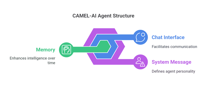 So, how do these agents actually work? In CAMEL-AI, they’re built with a few key pieces: